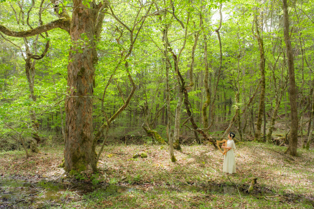 ​国産材ハープと自然音のコラボCD「竪琴の森」販売中。